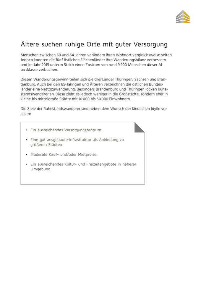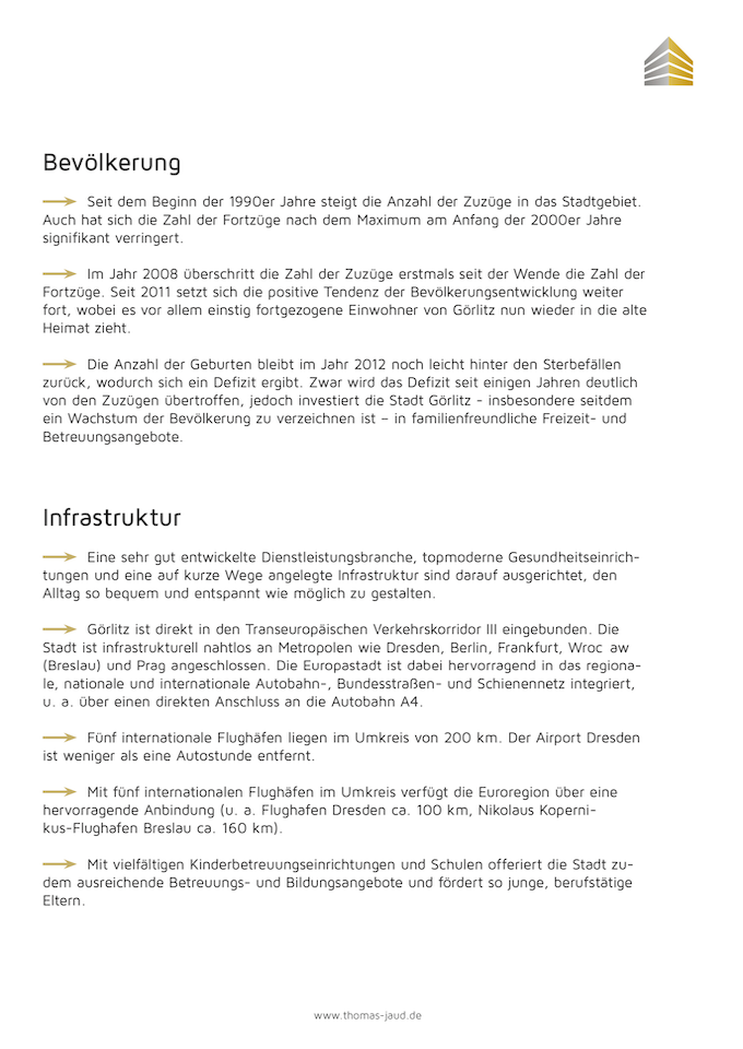 Bei der Beratung meiner Klienten sind professionelle Standortanalysen für mich eine Grundlage um die positive Wertentwicklung und Vermietbarkeit eines Objekts sicherzustellen. Daher erhalten Sie sowohl Standort- als auch Objektbezogene Daten und Auswertungen. Dabei ist es selbstverständlich, dass meine Zusammenarbeit mit unabhängigen Unternehmen und Landesämtern erfolgt.